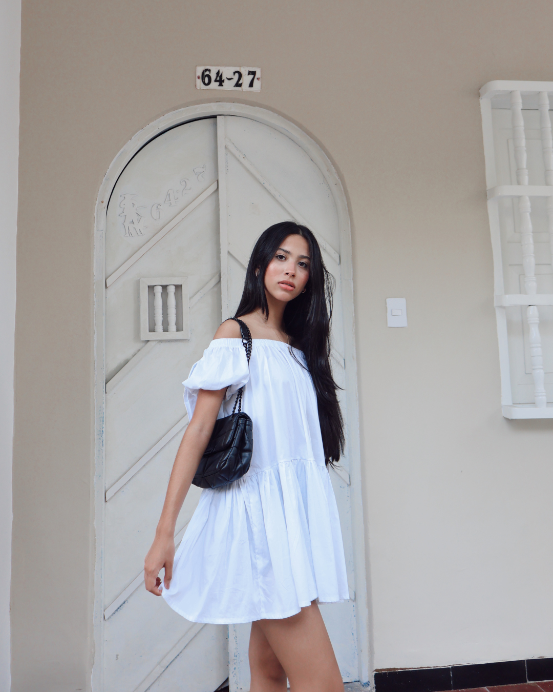 Pieza elaborada en algodón, ajuste elástico a la altura del hombro, mangas cortas y pompozas. Su horma es holgada.