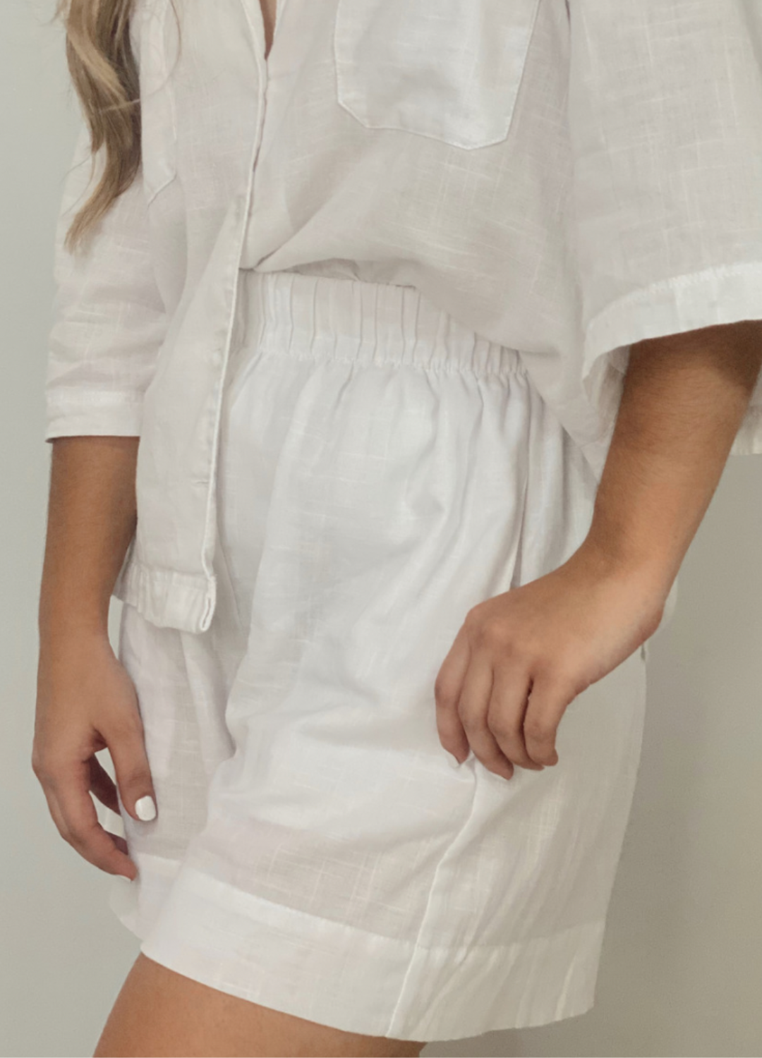 Pieza elaborada en lino, con ajuste elástico en la cintura. Un básico infaltable que aporta versatilidad, naturalidad  y frescura a tus outfits.